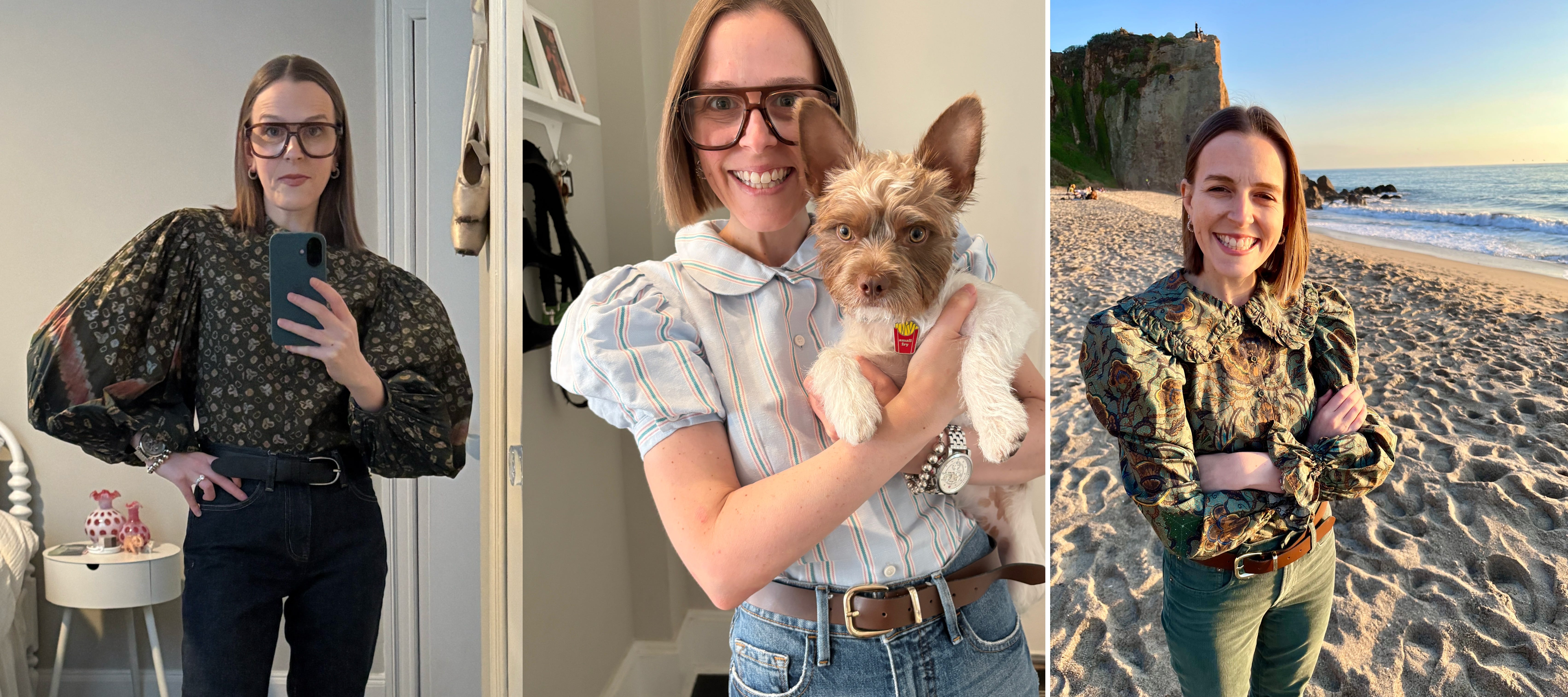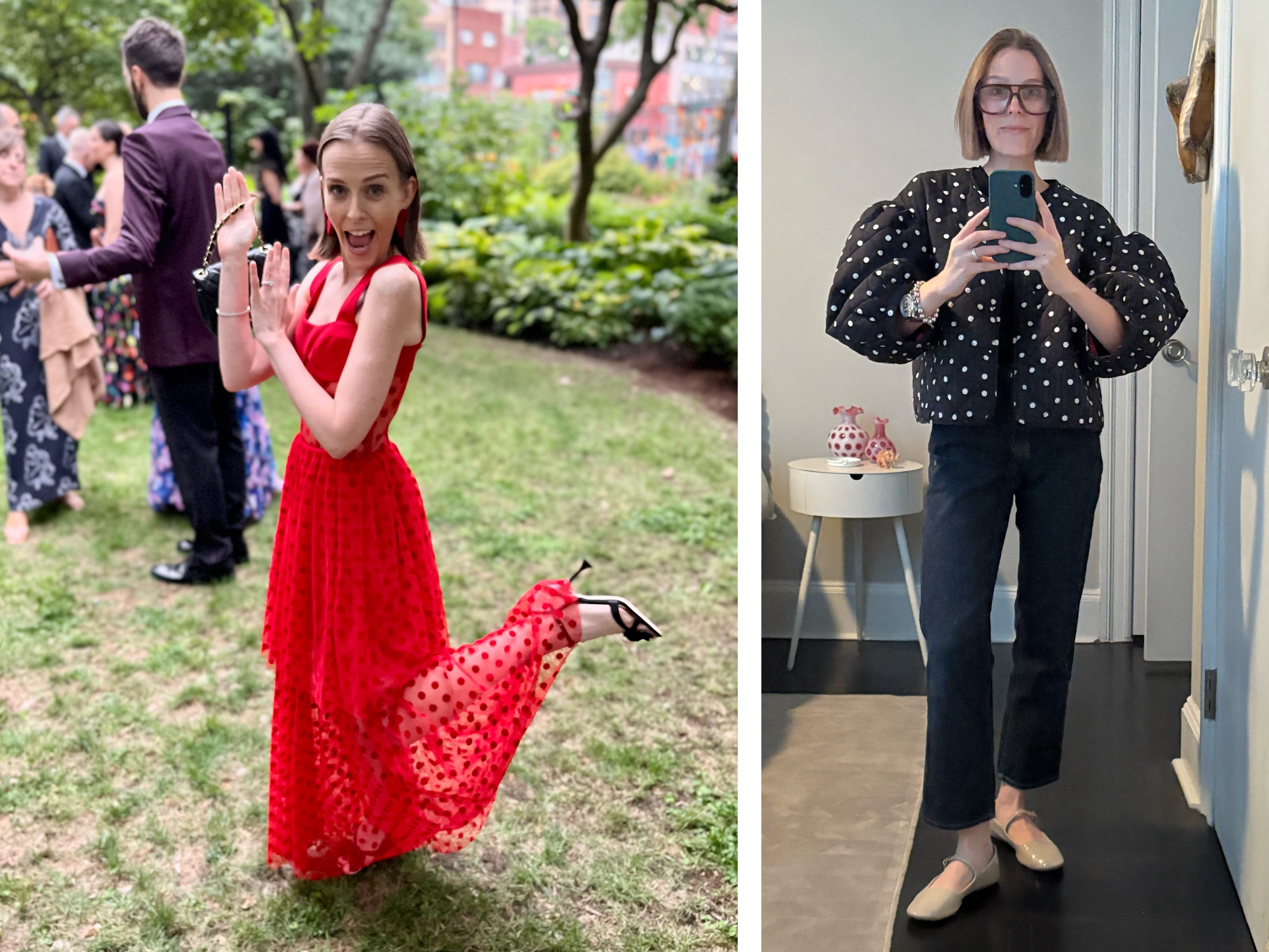I reached for my favorite polka dot cutie, a Clare V. puffed-sleeve jacket, to set the tone. By 9:30 a.m., my boss clocked it on Zoom when she asked with a smirk and a smile: “How many exaggerated sleeve pieces do you own?” She’s not wrong, folks. It’s one of my favorite styles to return to time and time again. I’m petite, but there is something about a puff sleeve that makes me feel larger than life. Powerful.
