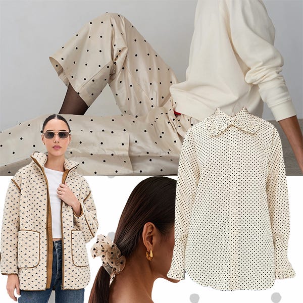 The Evonne Effect™: Polka dots feel cliché because we’re used to seeing them in their safest form: Retro dresses, twee blouses, predictable silhouettes. The new move isn’t the print itself, but the fabrication behind it. Below are a few pieces that rethink the dot entirely and feel like the right kind of refresh for January. Think taffeta, tulle, birdseye, and a familiar shape pushed just far enough to feel new again.