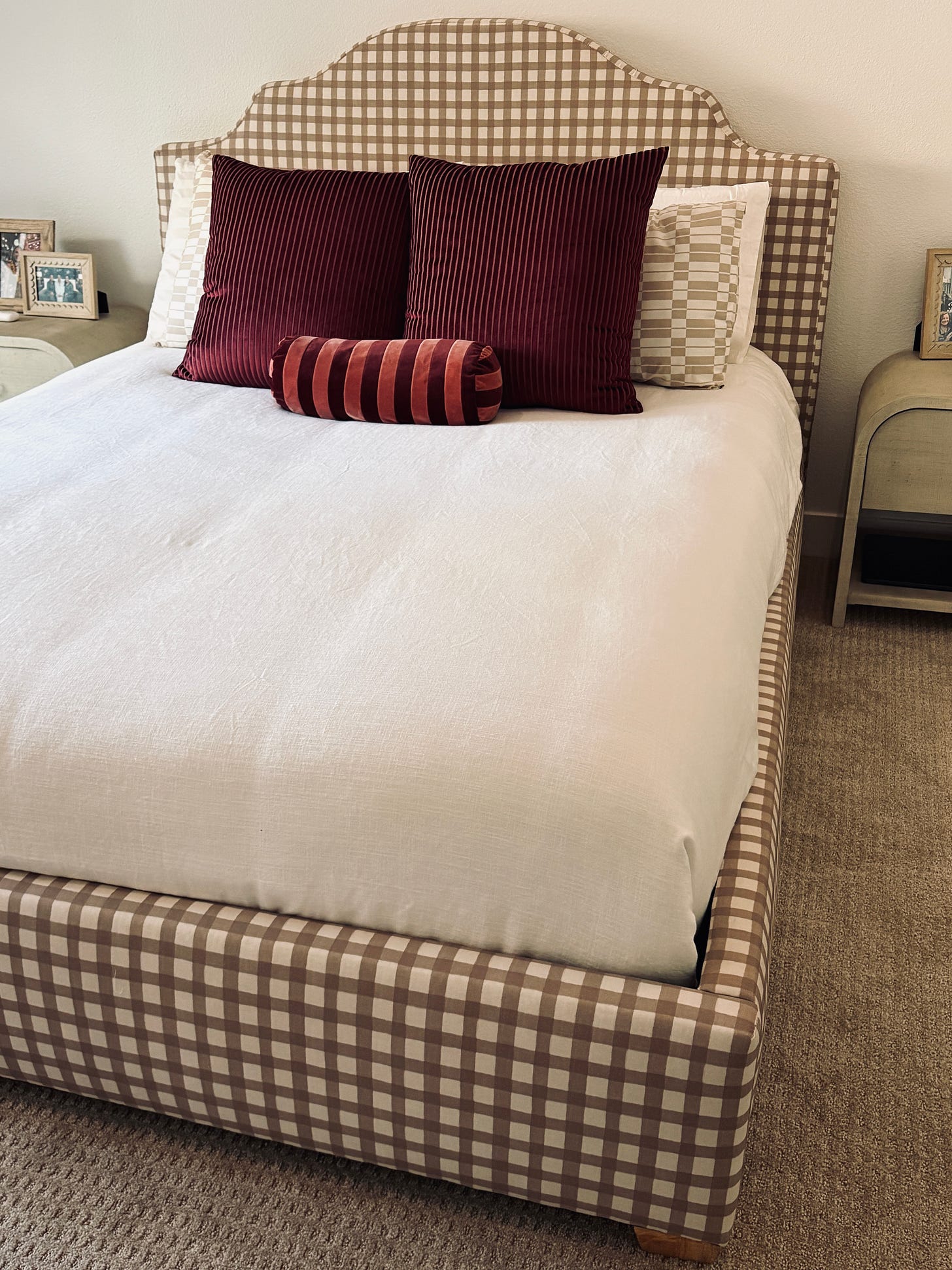 The Evonne Effect™: Stripes feel familiar because they’ve been boxed into predictable roles for centuries. Breton tees. Pinstripe suits. Variegated sweaters. The new move isn’t happening in my wardrobe at all. It’s happening in my bedroom. There, stripes bring structure without weight. They ground my new bedframe, letting the richness of color and pattern carry the mood.