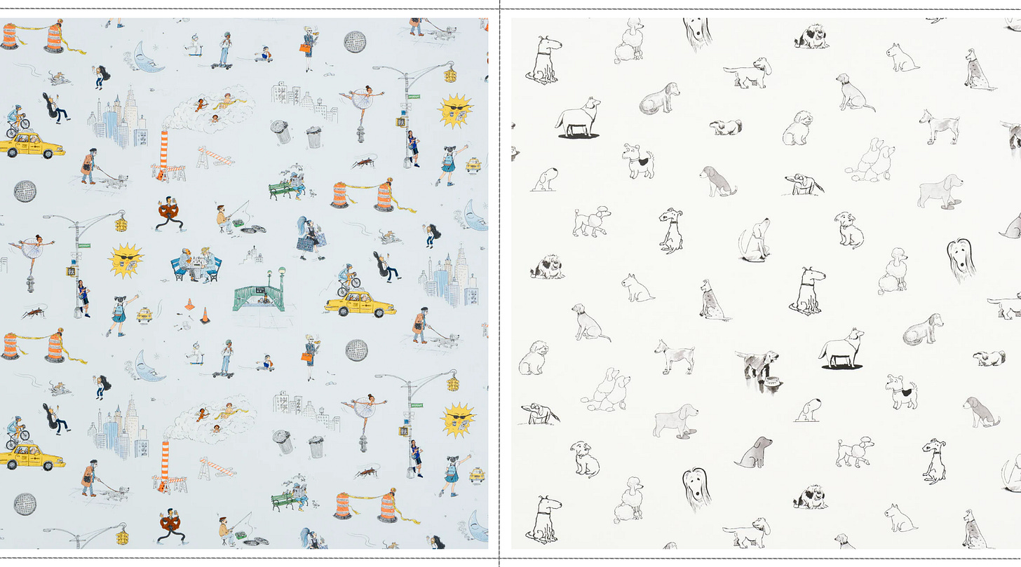 Mark my words, Joana Avillez is a designer to watch. She hails from NYC and makes a splash with her imaginative artistry. Known for her enchanting yet refined approach, she first gained wallpaper recognition for designs at the now-defunct networking space, The Wing. I’m giddy with excitement to share her most recent collaboration with The New Yorker x Schumacher, she’s produced my two favorite designs from the collection. With her unique perspective, Joana’s work blends humor and whimsy, resonating with diverse audiences. She’s one to keep your eyes on because whatever she draws up next, it is sure to be a crowd favorite in your home.