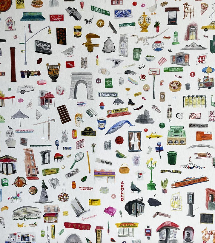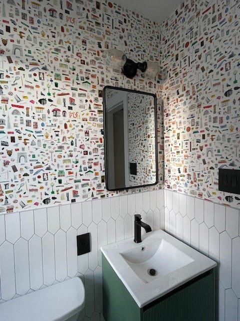 I’ve been enchanted by the transformative magic of wallpaper since the day I moved to NYC and gained the freedom to decorate my own space. When we renovated our bathroom, I chose the playful 'Too Much New York City Stuff' print from Flat Vernacular. This wallpaper bursts with tiny watercolor depictions of classic and quirky NYC icons—from landmarks to local gems—creating a true 'Ah-ha!' moment. I discover a new icon that I’m obsessed with every time I use the bathroom - revealing hidden gems I hadn’t noticed before. It turned the space into an oasis of creativity and inspiration.